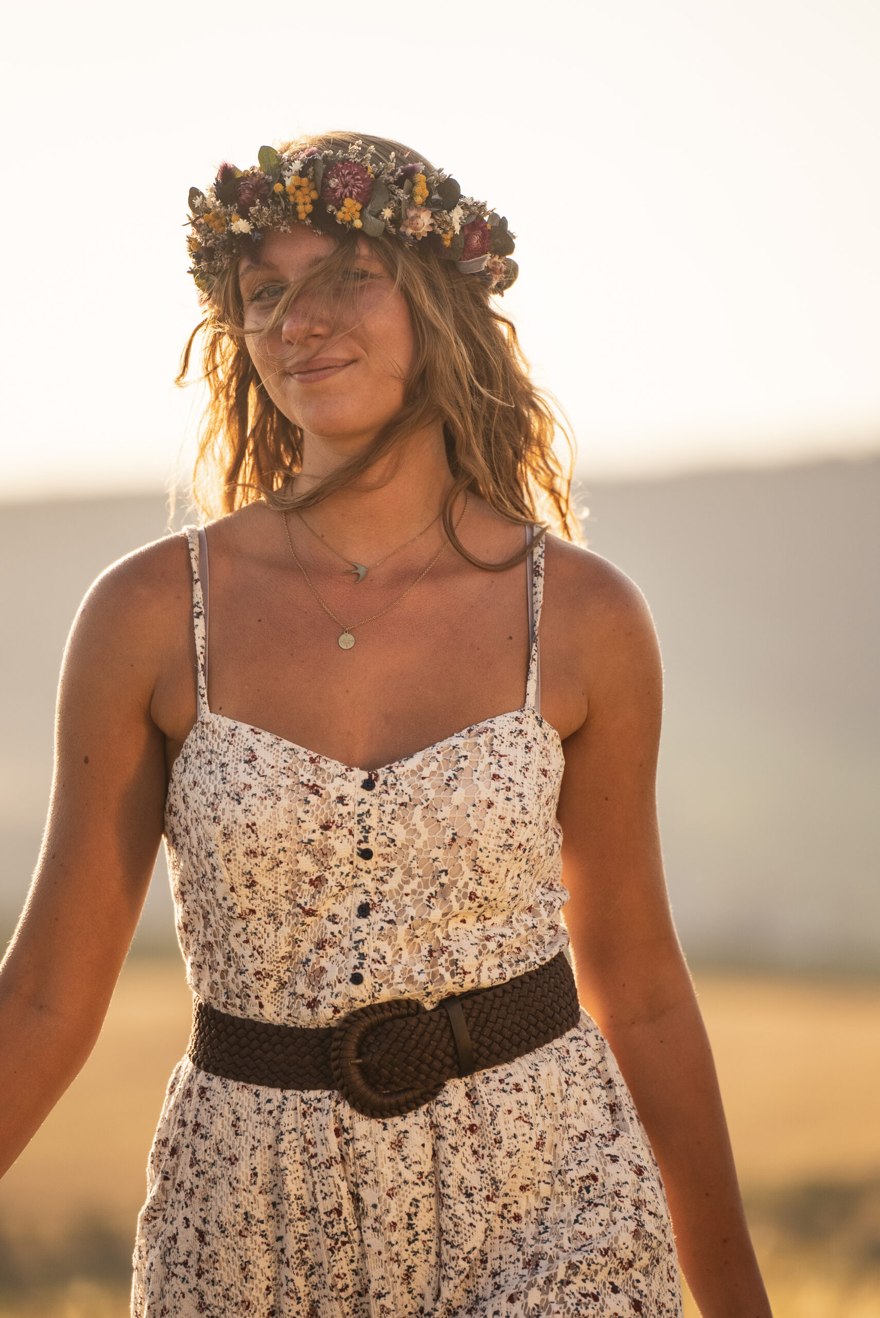 Dieses Fotoshooting im Erzgebirge, in den Wiesen eines alten Lost Places, im sanften Licht des Sonnenuntergangs, mit unseren Trockenblumenhaarkränzen, wird für immer eines unsere highlights bleiben.